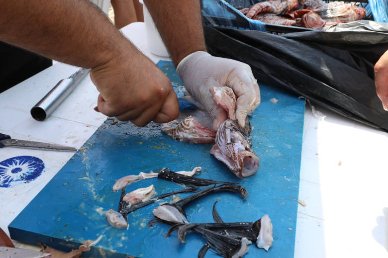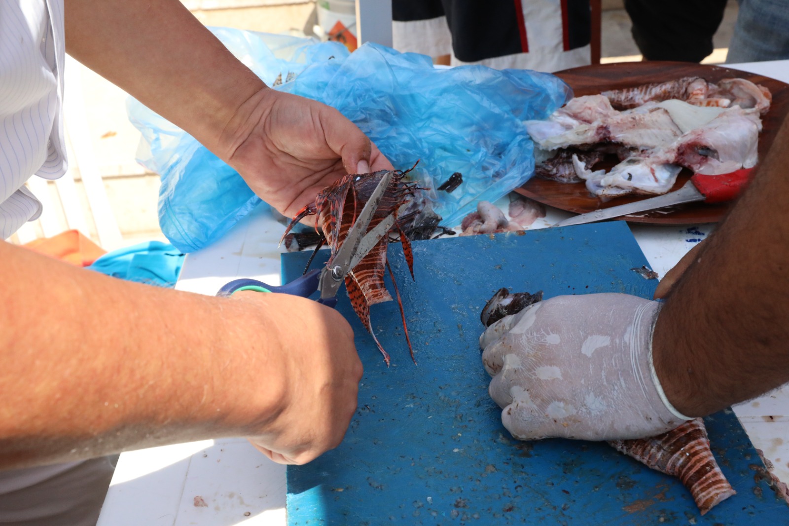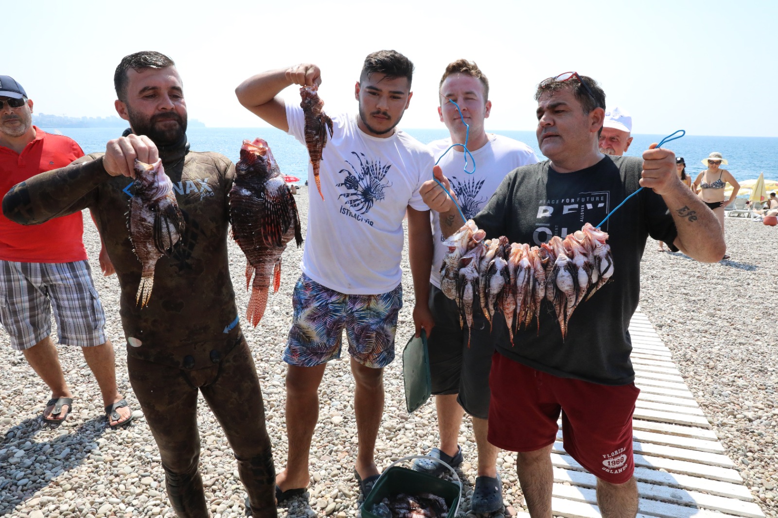 Antalya Büyükşehir Belediyesi tarafından Kızıldeniz’den Süveyş Kanalı ile kıyılarımıza ulaşarak yayılım gösteren ve yerleşik türlere ve deniz ekosistemine zarar veren zehirli aslan balığı ile mücadele amacı taşıyan etkinlik sonunda aslan balığı tadım etkinliği düzenlendi. Zehirli dikenleri temizlendikten sonra yenilmesinde sakınca olmayan aslan balığı tadıyla beğeni topladı.