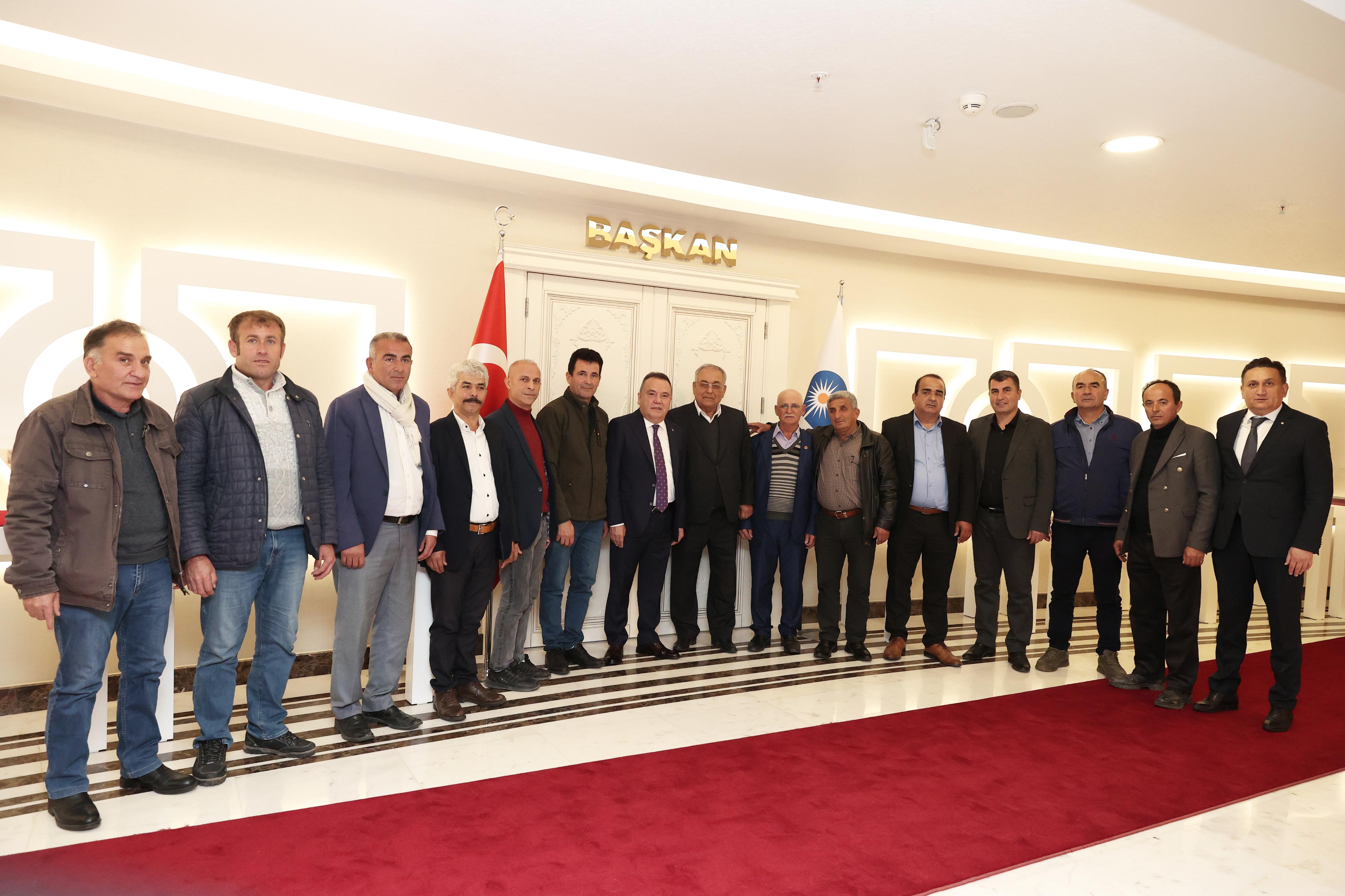 Manavgat ve Gazipaşa muhtarları Antalya Büyükşehir Belediye Başkanı Muhittin Böcek’i makamında ziyaret etti. İlçe meclis üyeleri ve belediye bürokratlarının da hazır bulunduğu ziyaretlerde muhtarlar mahallelerine ait sorunları ve taleplerini dile getirdi. Talepleri tek tek not alan Başkan Muhittin Böcek, muhtarlarla görüş alışverişinde bulunarak, sorunların çözümü için bürokratlarına talimat verdi.