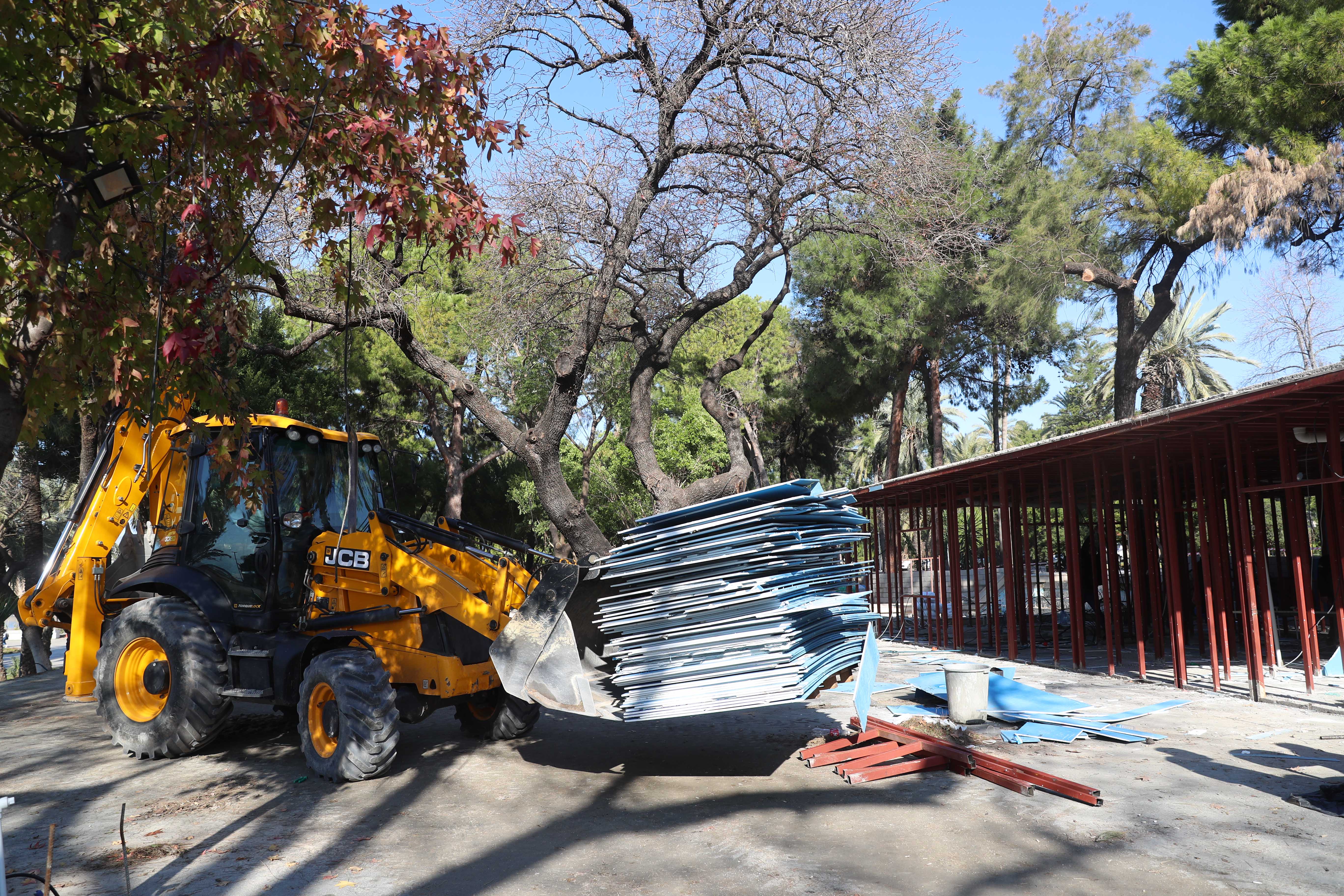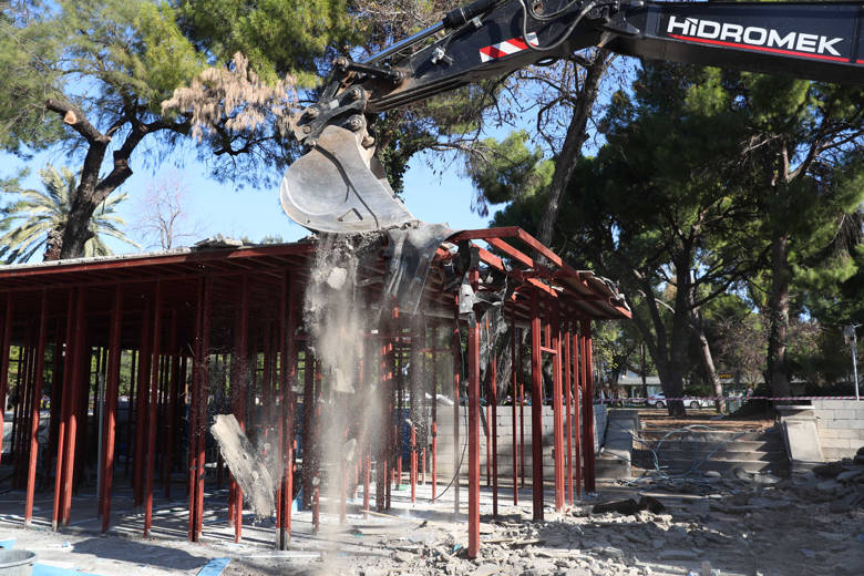 Büyükşehir Belediyesi Zabıta ekipleri, Fen İşleri ve Park ve Bahçeler Dairesi Başkanlığı ekipleri çay bahçesi içerisindeki sert zemini kaldırırken, izinsiz yapılan imalatları yıkıyor. İşletmeci tarafından yapılardaki büyültmeler sökülerek eski haline getiriliyor. Karaalioğlu Parkı içerisindeki yeşil doku Büyükşehir Belediyesi ekipleri tarafından eski haline getiriliyor