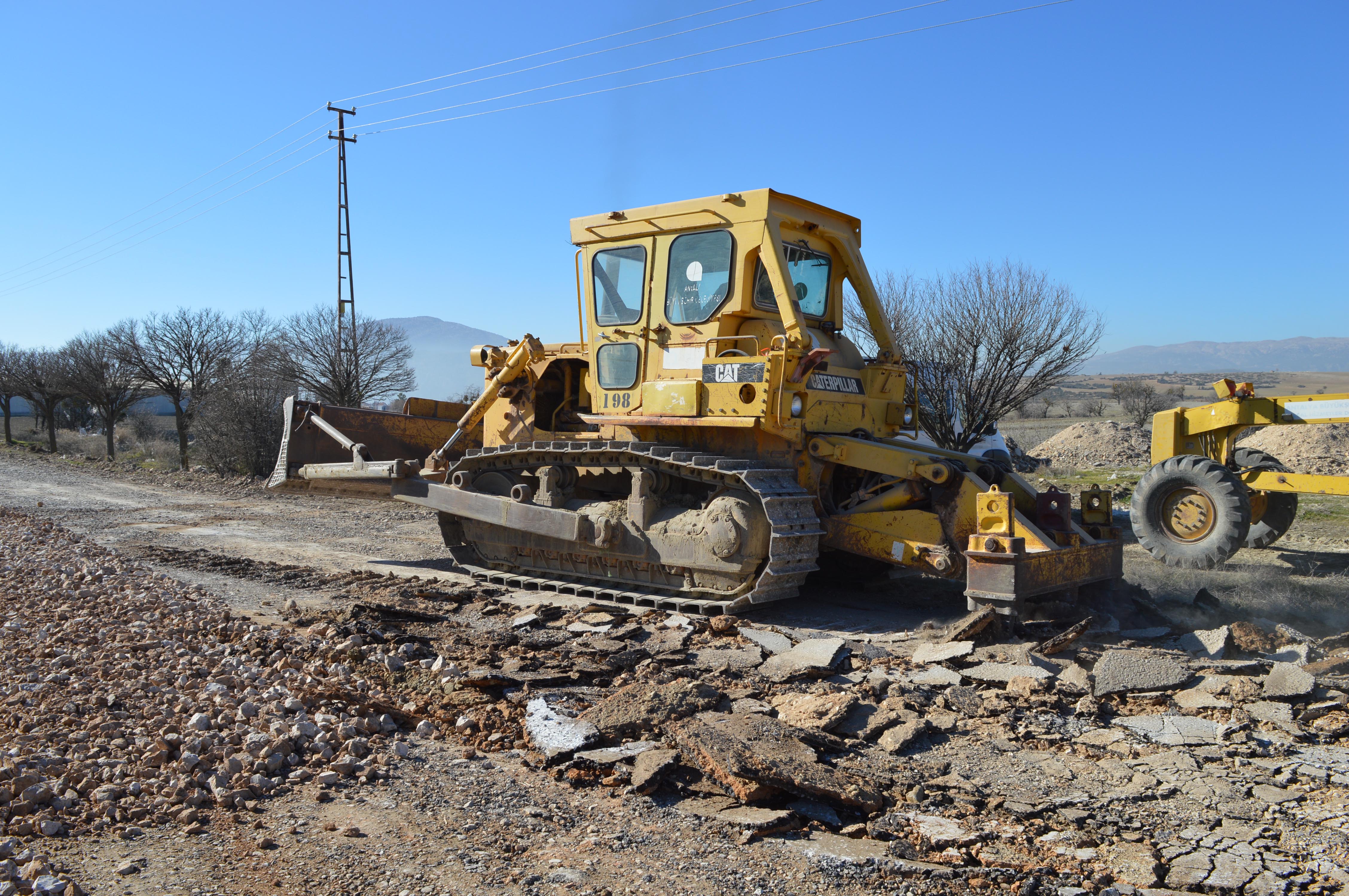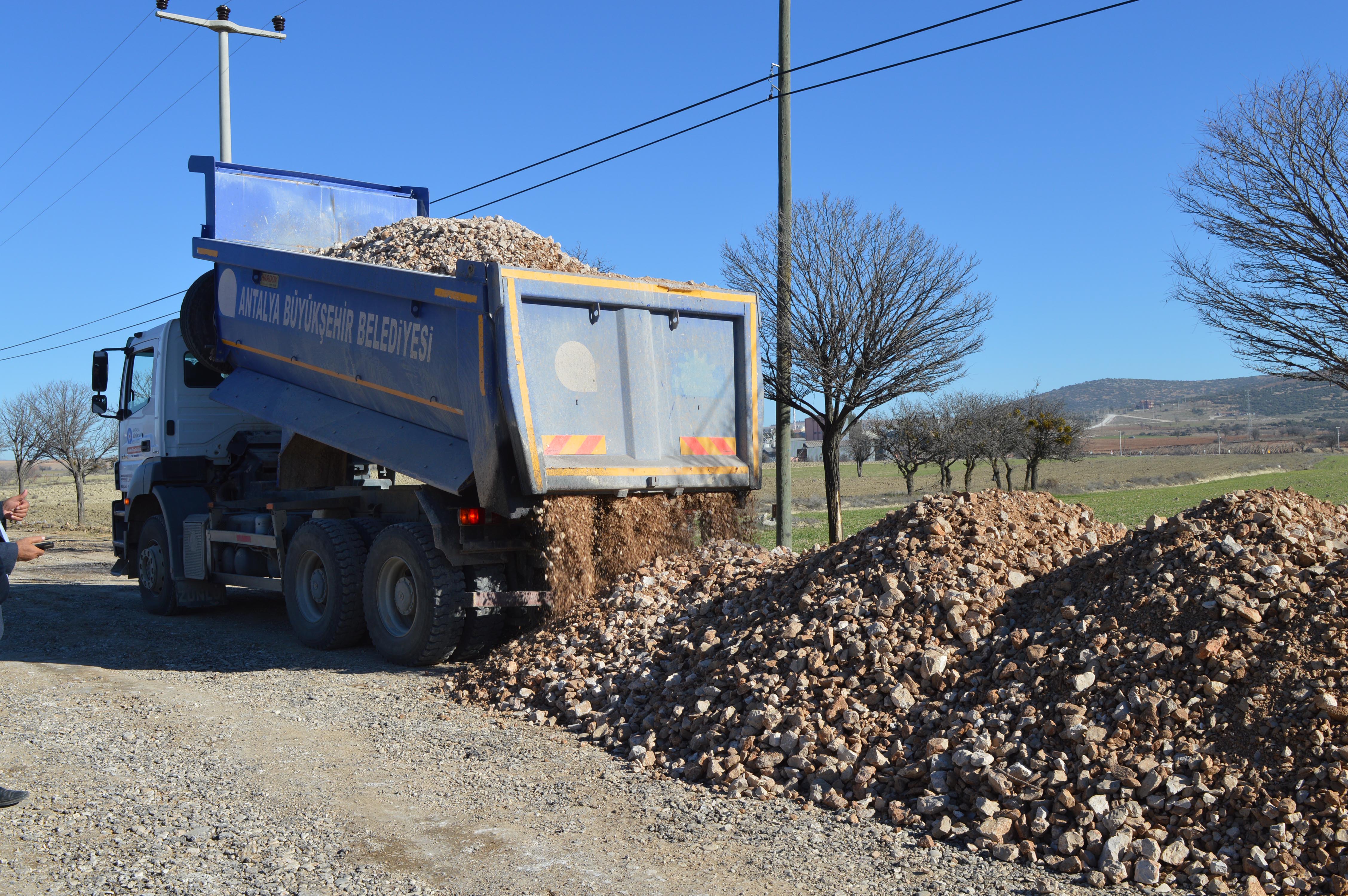 Antalya Büyükşehir Belediyesi Kırsal Hizmetler Dairesi Başkanlığı alt yapı ekipleri, Korkuteli ilçesinde 8 kilometrelik Akyar Mahallesi grup yolunu zamanla deforme olduğu için iş makinaları ile söküyor. Yağmur suyunun yolu bozmaması için belirlenen bölgelere büz koyan ekipler, mevcut büz ağızlarını ve şarampolleri de temizliyor. İlçeye kurulan konkasörden kamyonlarla dolgu malzemesi getiren ekipler, grup yoluna sererek silindir ile sıkıştırıyor. Ekipler uzun ömürlü ve konforlu bir yol olması için çalışmalarına aralıksız devam ediyor.