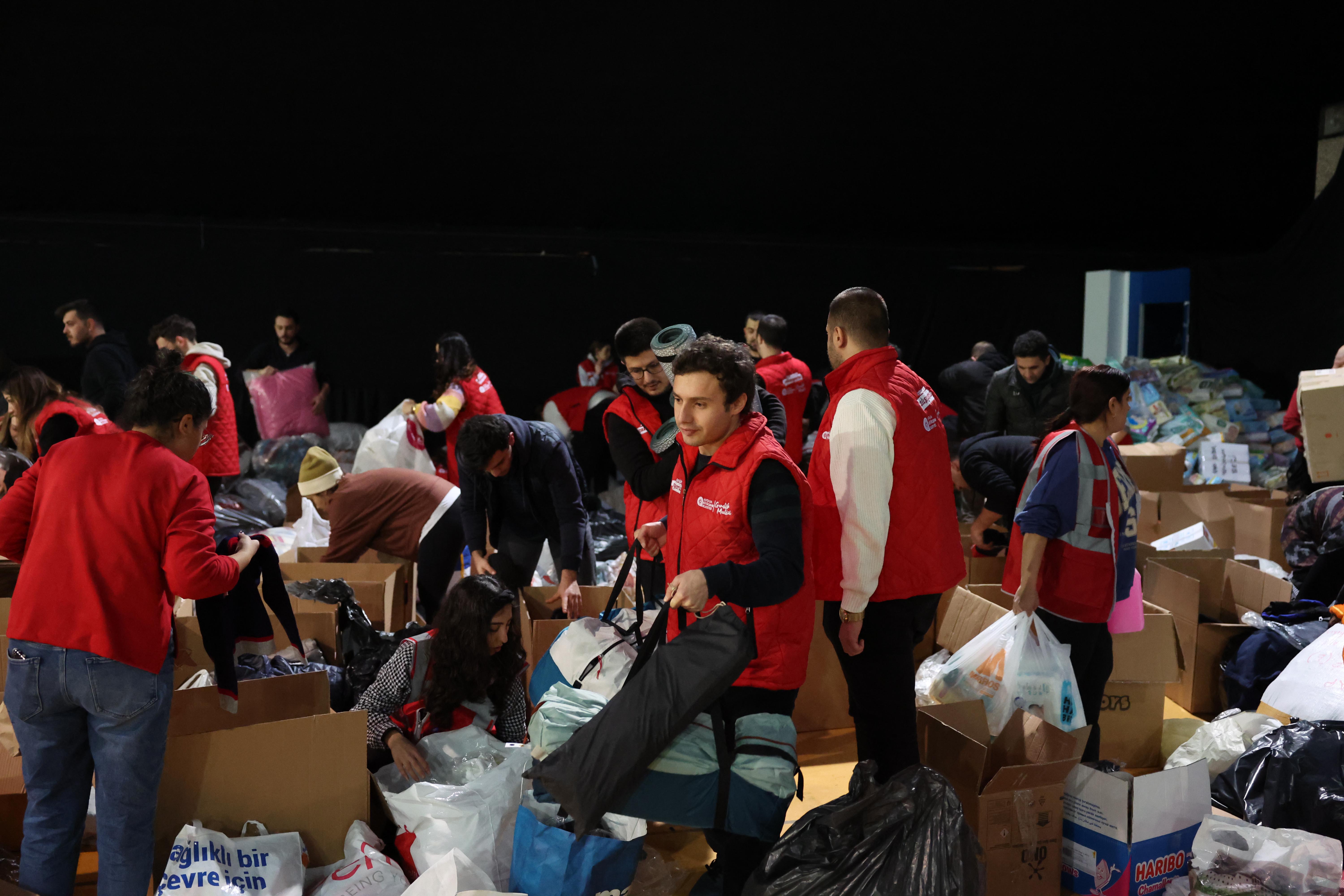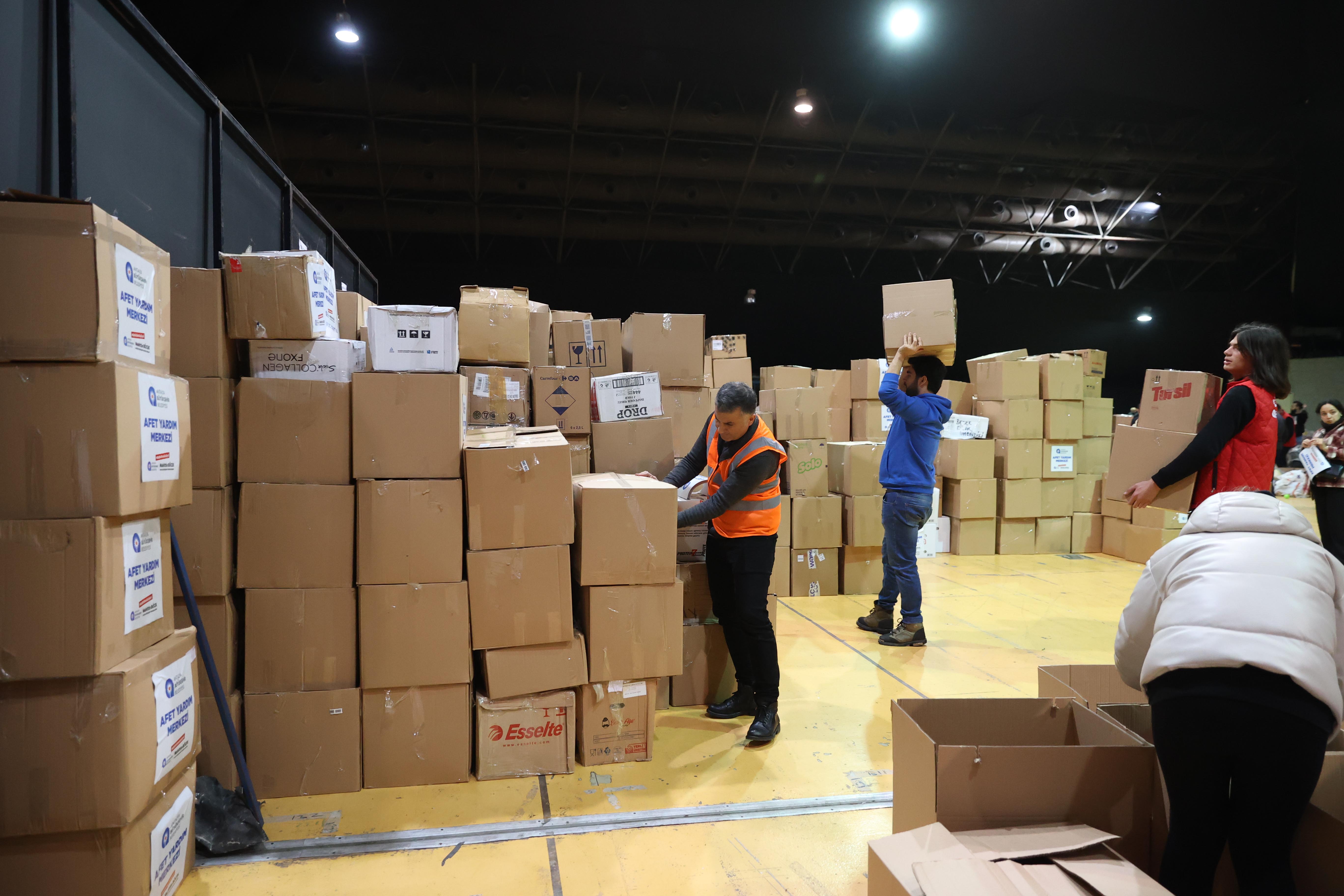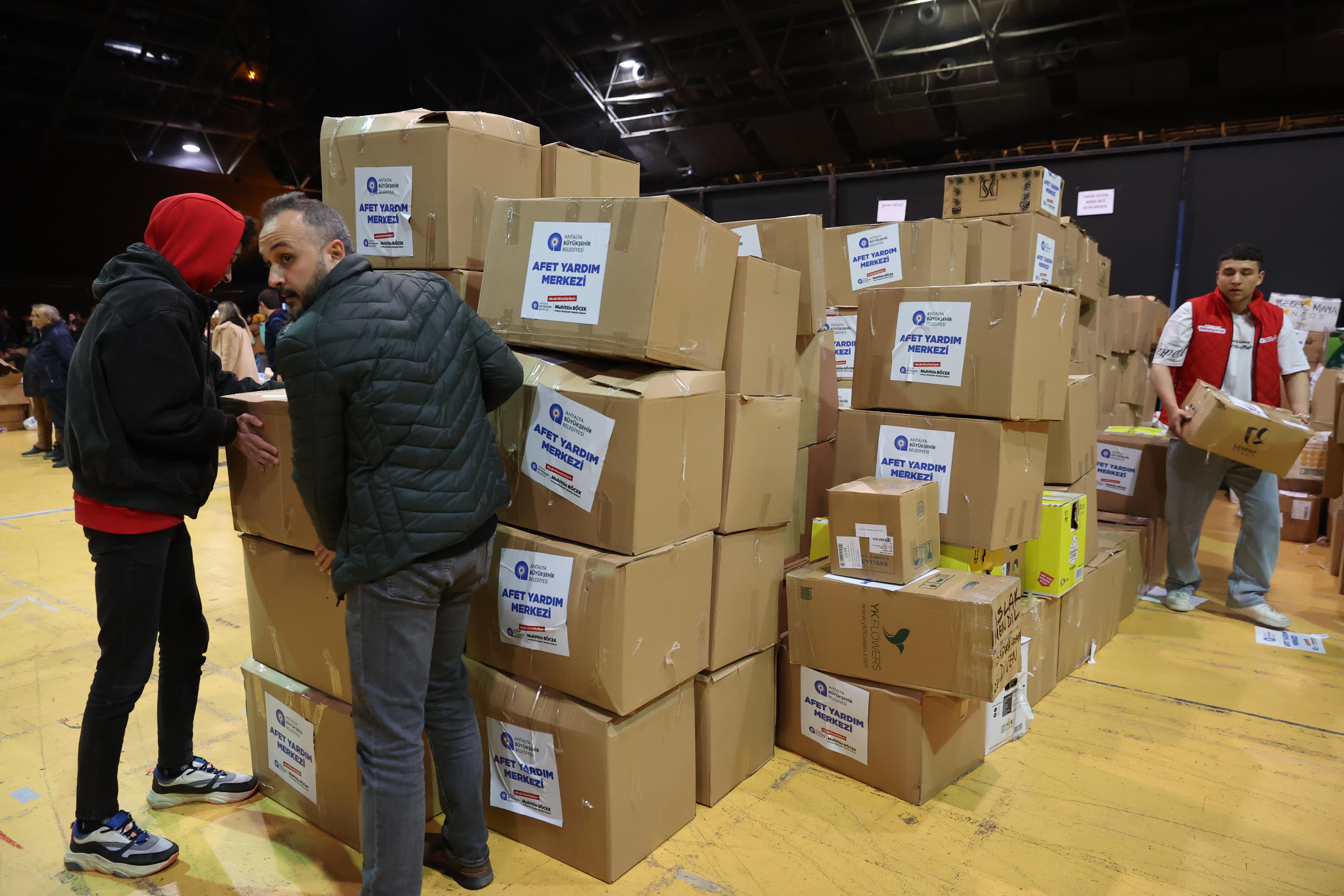 Antalya Büyükşehir Belediyesi’nin Cam Piramit’te oluşturduğu Afet Yardım Merkezi de duyarlı vatandaşların akınına uğradı. Antalya tek yürek oldu. Afet merkezine yardım yağdı. Büyükşehir Belediyesi tüm birimleriyle yardım malzemelerinin sınıflandırılması, paketlenmesi ve deprem bölgesine ulaştırılması konusunda büyük bir özveriyle 24 saat esasıyla görev yapıyor.