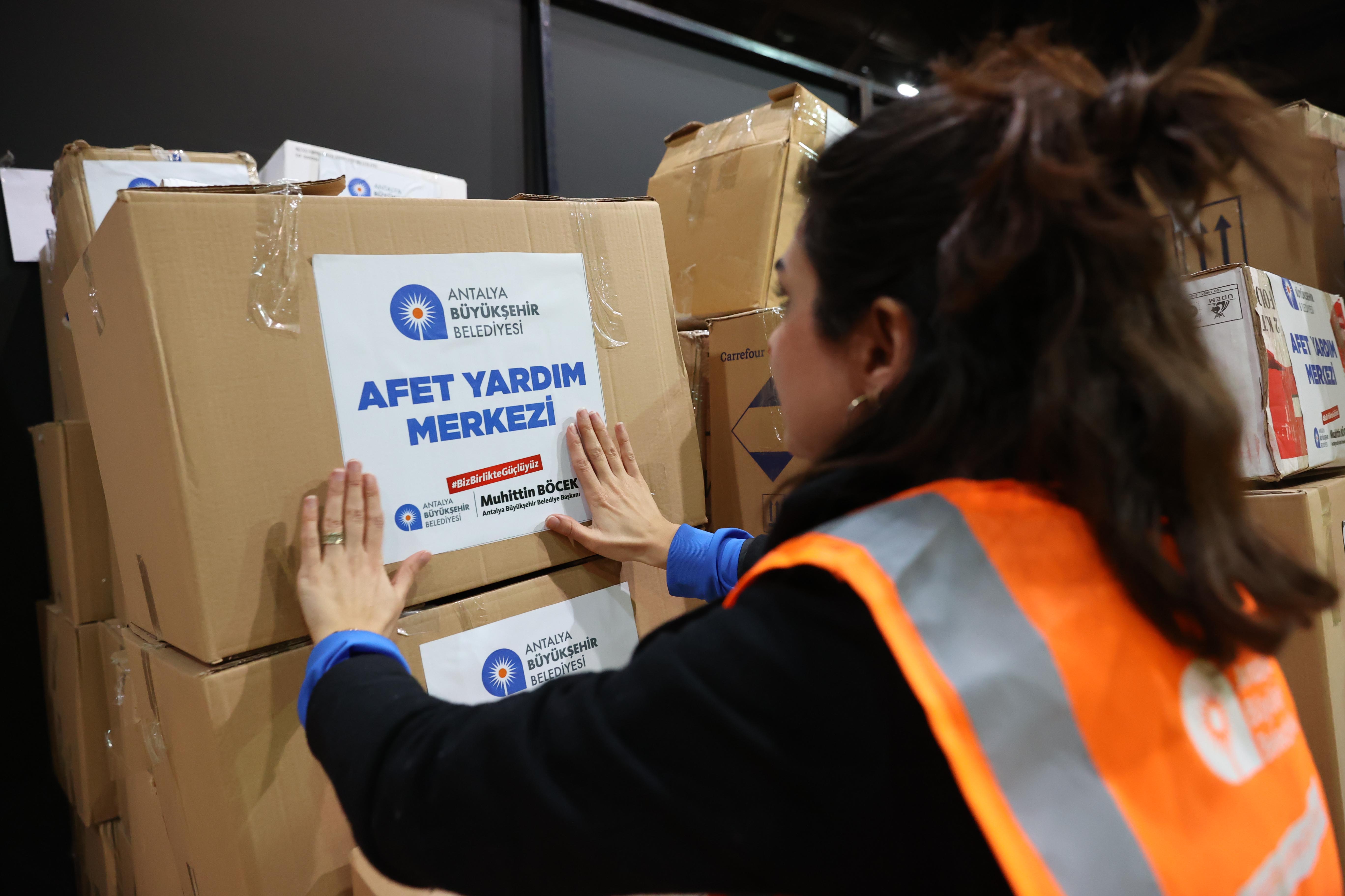 Tek yürek olan Antalya halkına teşekkür eden Başkan Muhittin Böcek, “Vatandaşlarımız çok duyarlı bir şekilde yardımlarını bizlere ulaştırdılar. Dün gelen yardımlarımızı gönüllü vatandaşlarımızla birlikte istifledik. Ağırlıklı olarak gıda maddeleri, hijyenik ürünler, kağıt havlu, battaniye, yorgandan oluşan malzemeleri tasnif ettik, tırlarımızı yükledik. Gıda ve ihtiyaç malzemeleri yüklü 11 yardım tırı Maraş ve Hatay’a gönderdik” diye konuştu.