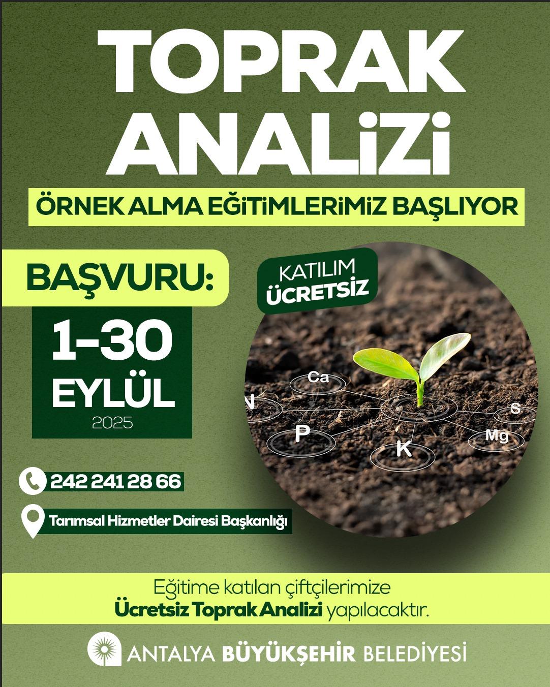 Eğitim programları kapsamında toprak analizi eğitimi de gerçekleştirilecek. Eğitime katılan çiftçilere ücretsiz toprak analizi yapılacak. Toprak analizi eğitimlerine ise başvurular 1-30 Eylül 2025 tarihleri arasında yapılabilecek. Uzman eğitmenler tarafından gerçekleştirilecek eğitimlerde üreticiler, teorik bilginin yanı sıra uygulamalı çalışmalarla da deneyim kazanacak. Eğitimler ile çiftçilerin ve üreticilerin ekonomik kazançlarını artırmak, kırsal kalkınmaya katkı sağlamak ve yerel üretimi desteklemek amaçlanıyor.