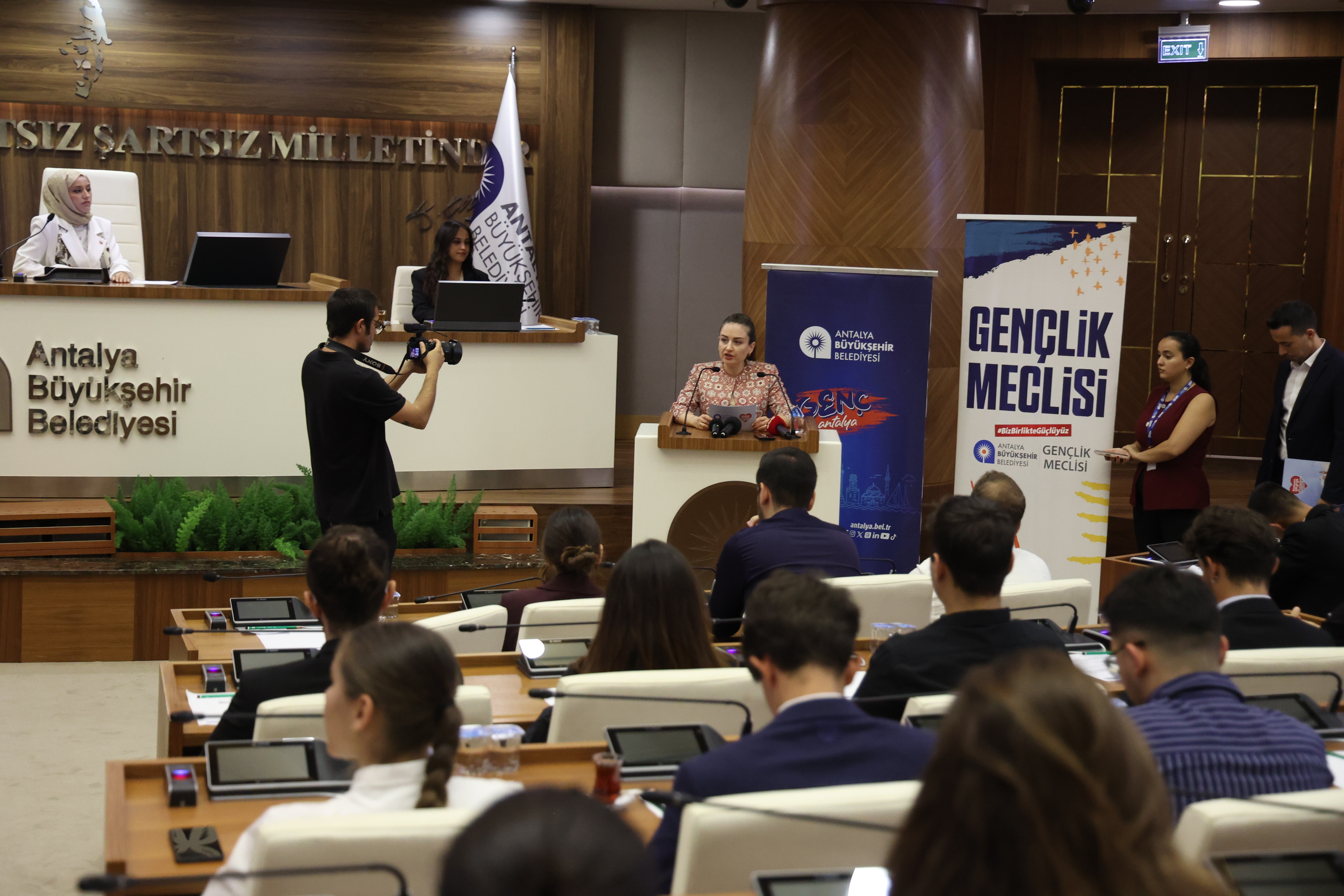 Antalyalı gençlerin fikir ve önerileriyle kent yönetiminde söz sahibi olmasını sağlayan Antalya Büyükşehir Belediyesi Gençlik Meclisi, 2024-2025 dönemi son toplantısını gerçekleştirdi. Büyükşehir Belediyesi Meclis Salonu’nda yapılan toplantıya Büyükşehir Belediyesi Başkan Vekili Büşra Özdemir de katılarak, gençleri yalnız bırakmadı. Gençlere seslenen Başkan Vekili Özdemir, yaşanılan çağın gençlere belli sorumluluklar yüklediğini belirterek, dijital dönüşümden iklim krizine, sürdürülebilir olmaktan toplumsal eşitliğe kadar büyük meseleler karşısında en büyük güçlerinin gençlerin enerjisi olduğunu kaydetti.