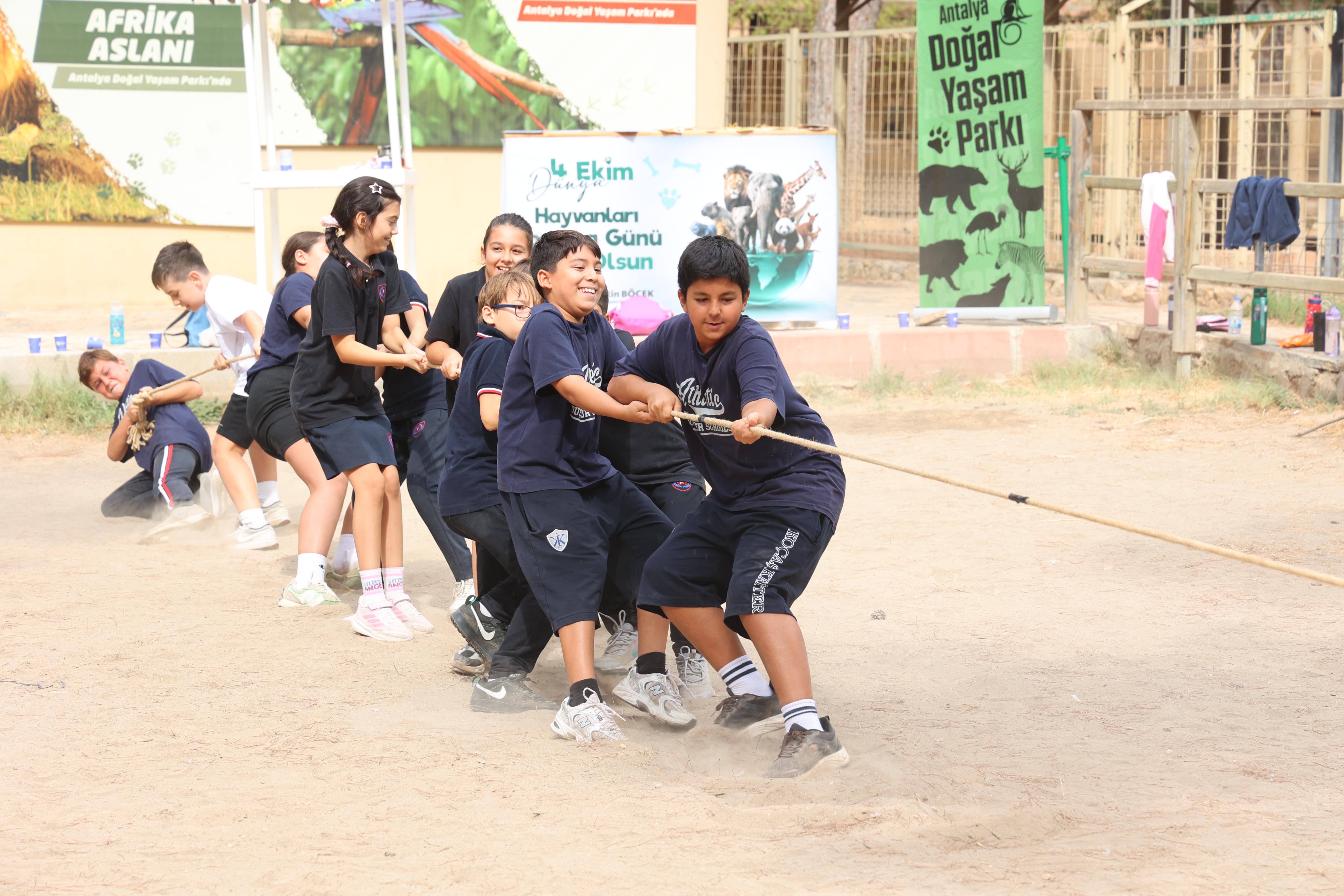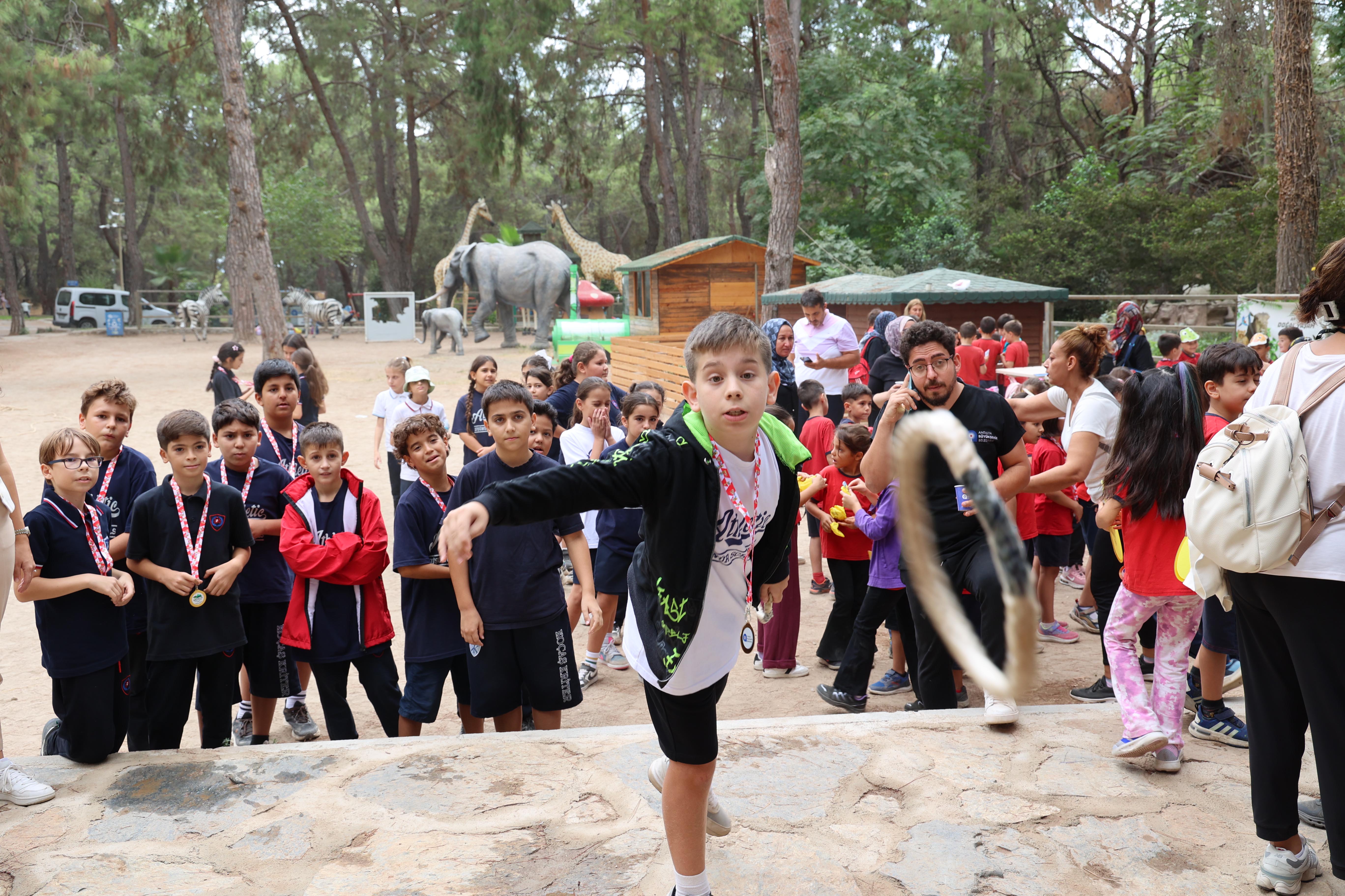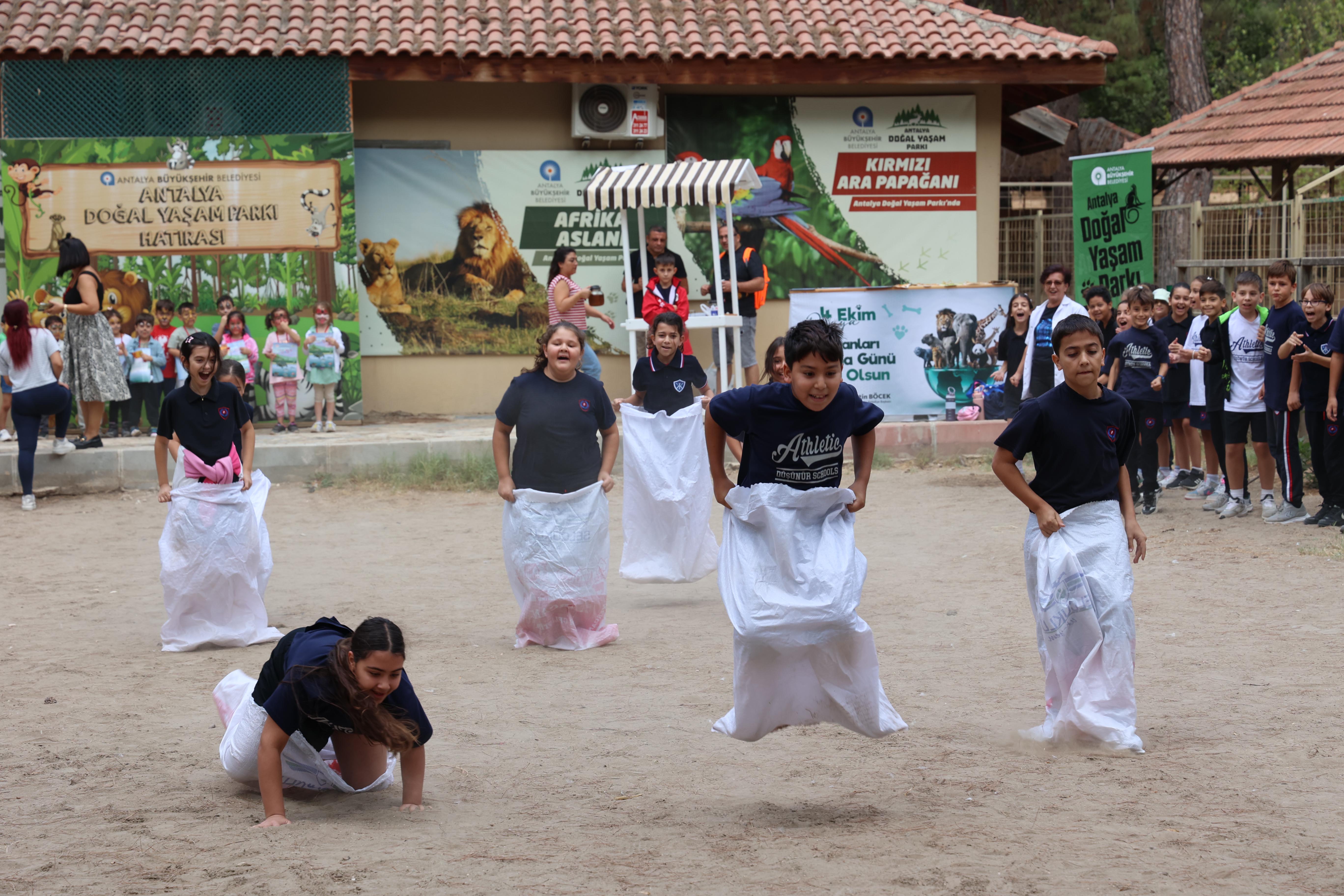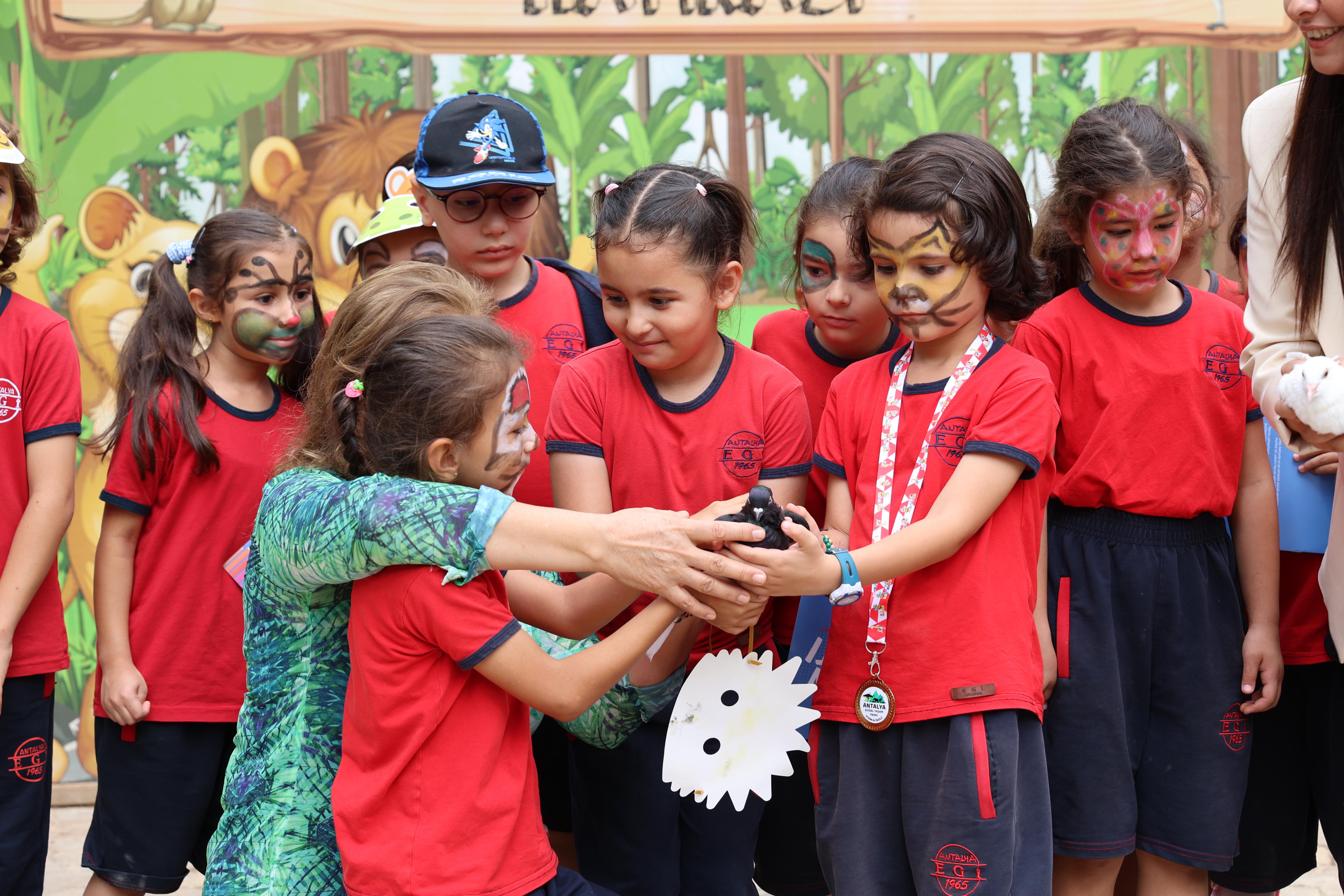 Doğal Yaşam Parkı gezisi sonrası etkinlik alanında buluşan öğrenciler, günün anısına hazırlanan özel etkinliklere katıldı. Çocuklar; hayvan temalı dikkat ve doğa dedektifleri oyunu, yüz boyama, halat çekme ve çuval yarışmaları gibi birbirinden eğlenceli oyun ve yarışmalarla keyifli vakit geçirdi. Minikler, ayrıca Doğal Yaşam Parkı’na yaralı olarak getirilip tedavisi tamamlanan iki güvercinin doğaya salınması heyecanını yaşadı. Çocukların ellerinden özgürlüğe kanat çırpan güvercinler, unutulmaz bir anıya dönüştü. Etkinlik sonunda Büyükşehir Belediyesi, öğrencilere boyama kitabı ve maske hediye etti.