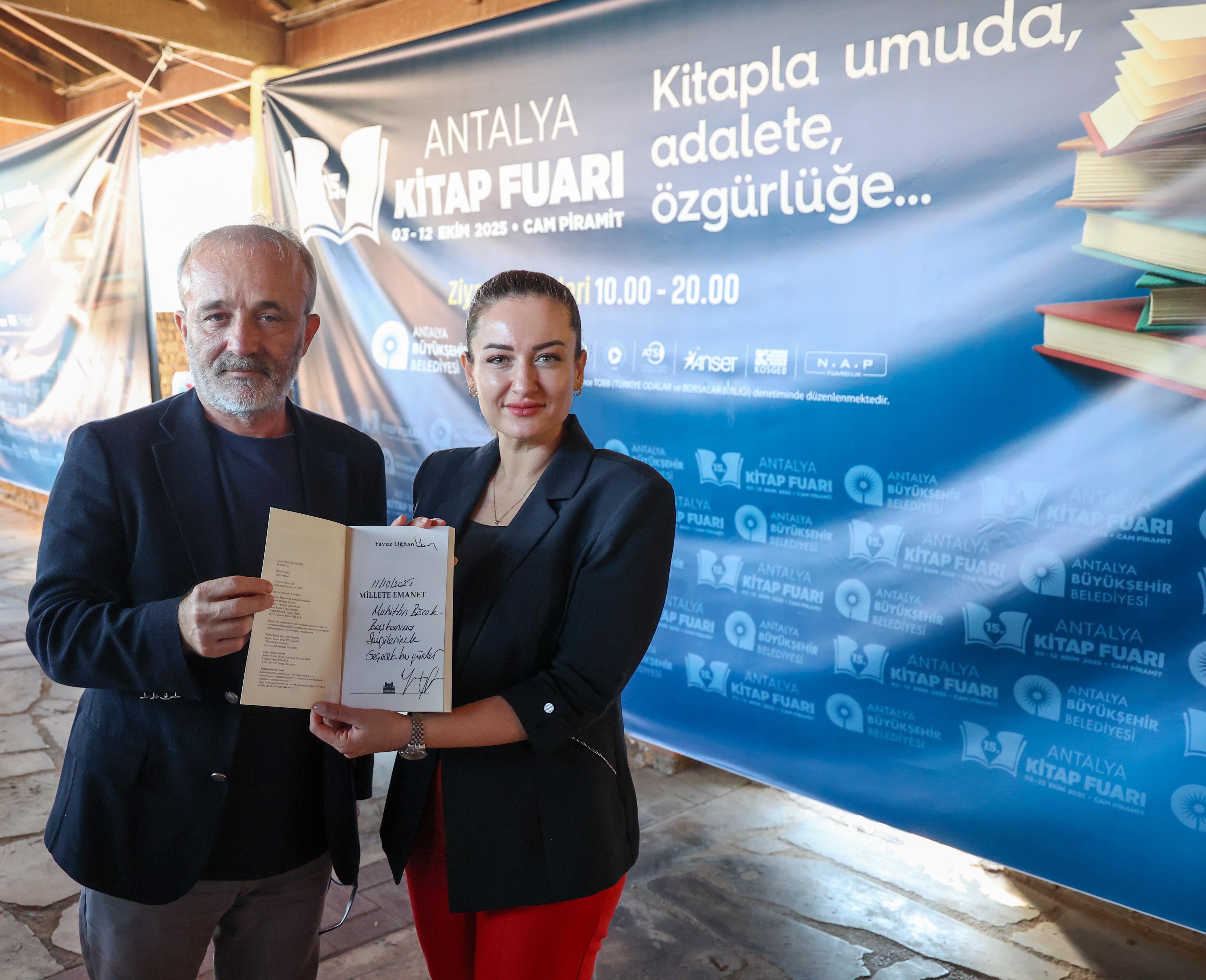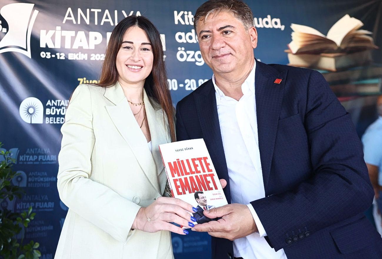Antalya Büyükşehir Belediyesi ev sahipliğinde bu yıl 15’incisi gerçekleştirilen Antalya Kitap Fuarı’nın 9'uncu gününde de yoğunluk yaşandı. Cumhuriyet Halk Partisi Grup Başkanvekili Murat Emir ile Antalya Büyükşehir Belediye Başkan Vekili Büşra Özdemir, yazar Yavuz Oğhan’ın yazdığı “Millete Emanet” kitabının imza etkinliğine katıldı.