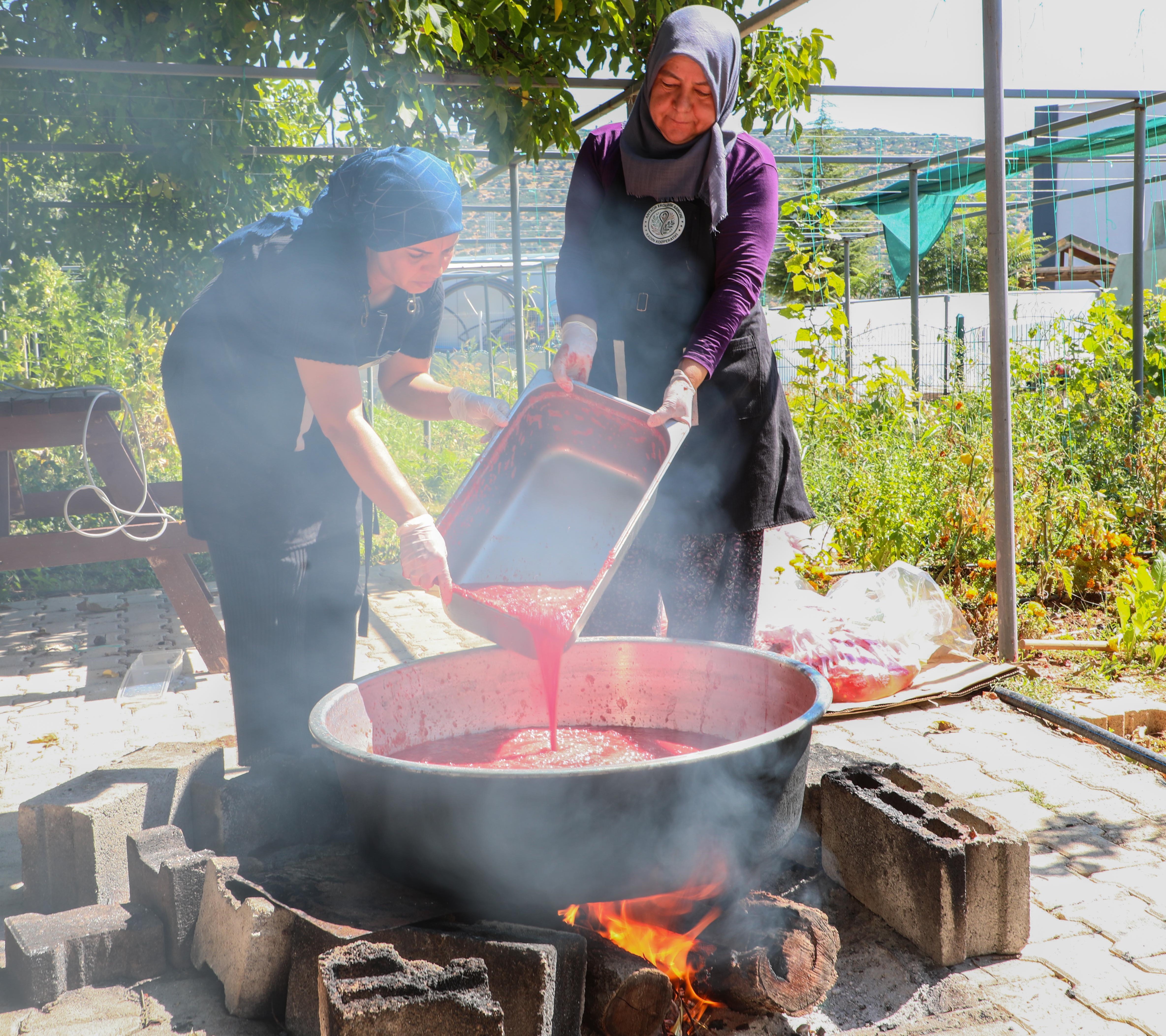 Antalya Büyükşehir Belediyesi’nin kadınlara destek olmak amacıyla kurduğu üretim alanlarında kış hazırlığı hummalı be şekilde sürüyor. Kadınlar, özellikle kış aylarında sofraların vazgeçilmezi olan erişte, tarhana, salça, reçel, turşu yapımının yanı sıra sebze ve meyve kurutma işlemlerine de devam ediyor. Kadın üreticilerin el emeği ürünleri daha sonra satış alanlarında vatandaşlarla buluşuyor.