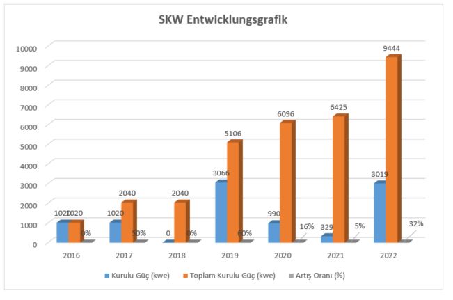 Wir haben unseren thermischen Effekt auf die globale Erwärmung minimiert, indem wir unsere Abwärme bei hoher Temperatur und Strömung von 460 °C auf 170 °C reduziert haben. Der Bau begann im Februar 2021 und die Testproduktionen wurden im September gestartet.Es ist die erste und einzige Müllverbrennungsanlage in unserem Land, die mit einer Dampfturbine Energie aus Abwärme erzeugt wird.