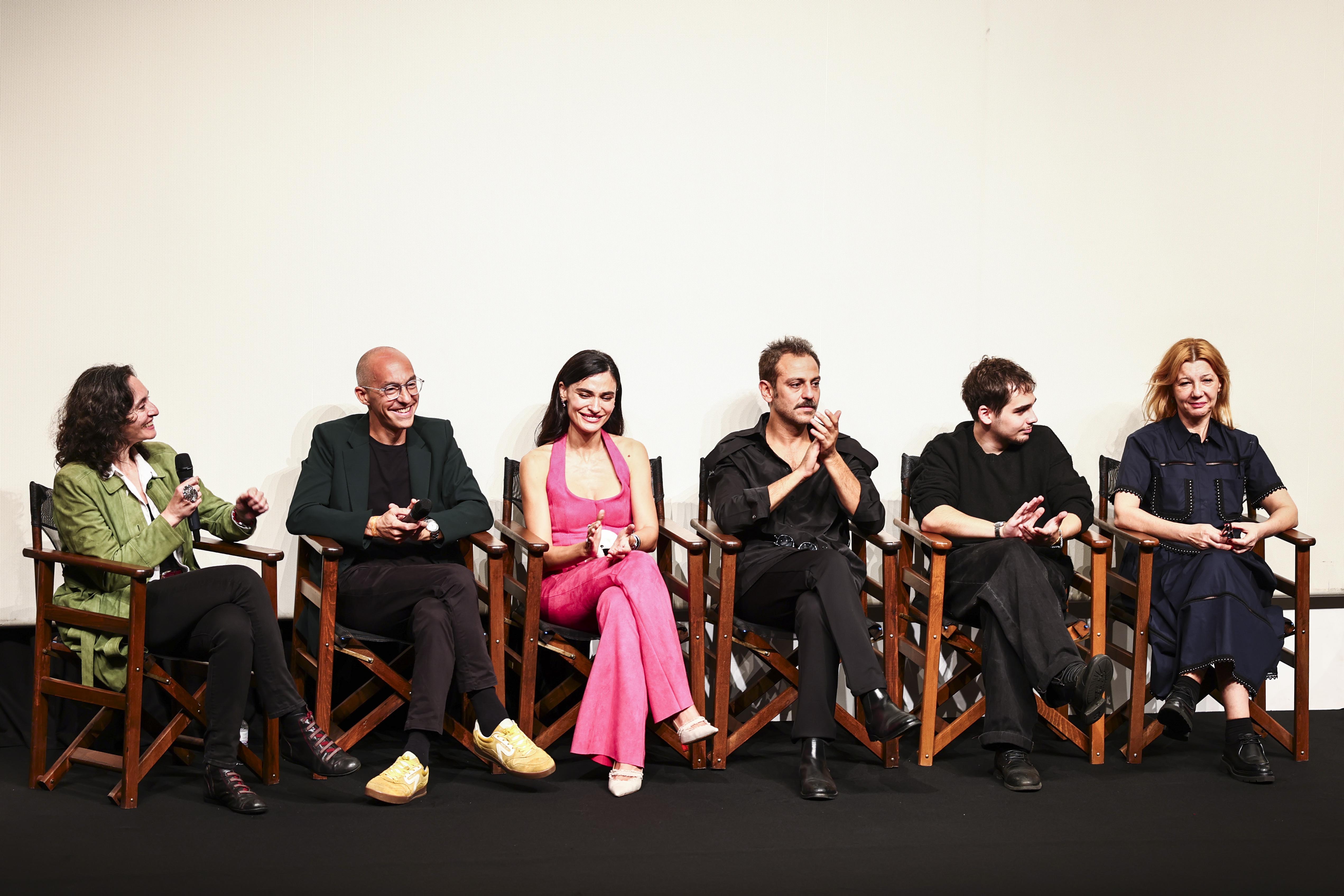 Erkan Kolçak Köstendil ise bunun üzerine gülerek “Cevap hakkımı kullanayım” diye mikrofonu aldı: “A4 konusuna açıklık getirmek istiyorum; evet, A4 kağıtlar vardı ışıklar için. ‘99 yılında geçtiği için hikaye; Müslüm Gürses’in Gülhane konserinin patladığı dönem, ben de beyaz takım elbiseyle oynamak istedim. Ama bütün ışık dengesini bozduğum için o takımı giyemedim” Oyuncu, sözlerini; “Bu, benim Çağla ve Guillaume ile ikinci filmim. Onların sinemaya tutkusunu, aşkını o kadar iyi biliyorum ki... Herhalde ‘birinin düğünü var, onu çekmeye gidiyoruz’ deseler ona da gider, oynarım” diye noktaladı.