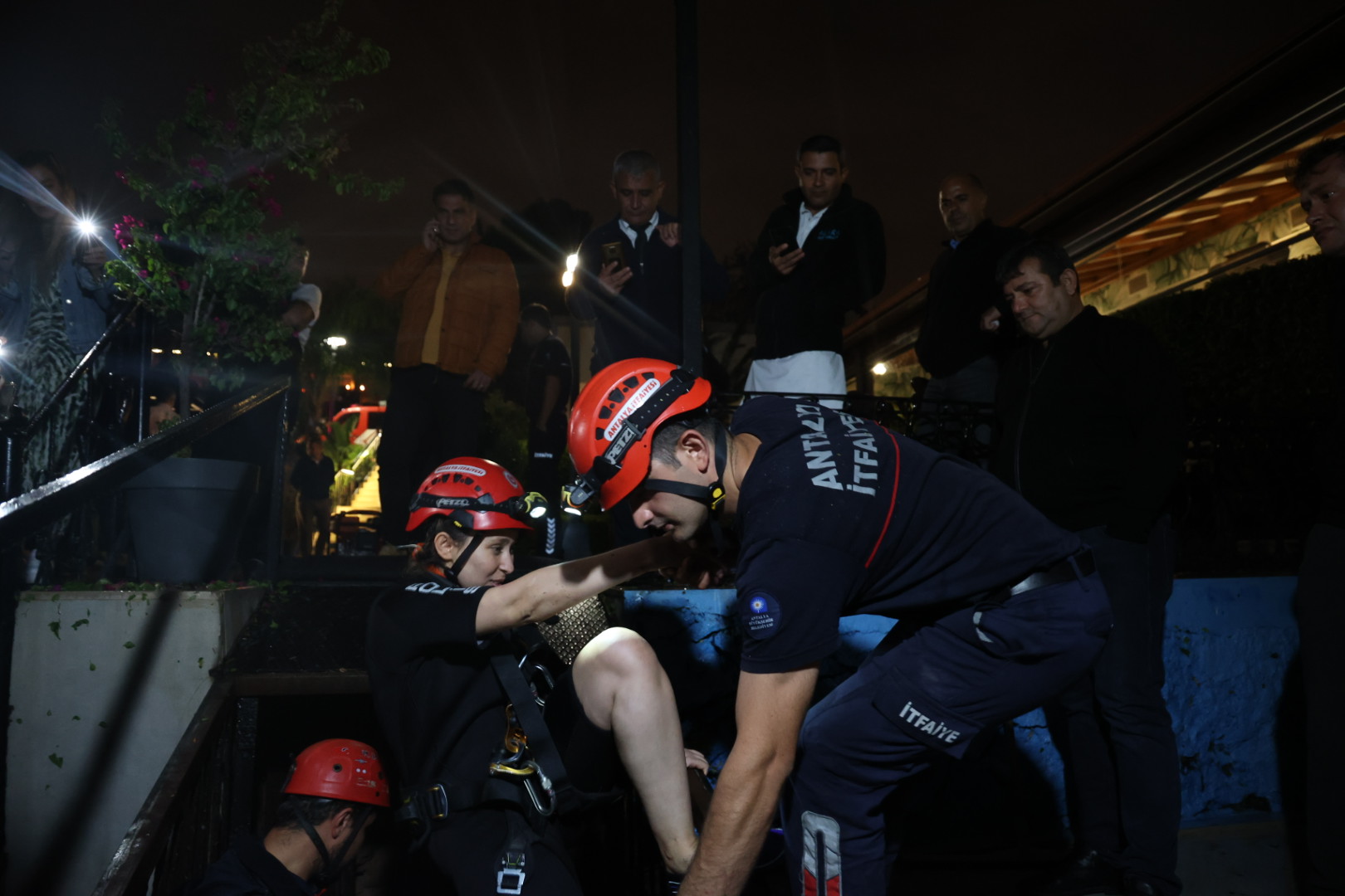 İTFAİYE MAĞDURLARI HALATLA YUKARI ÇEKTİ