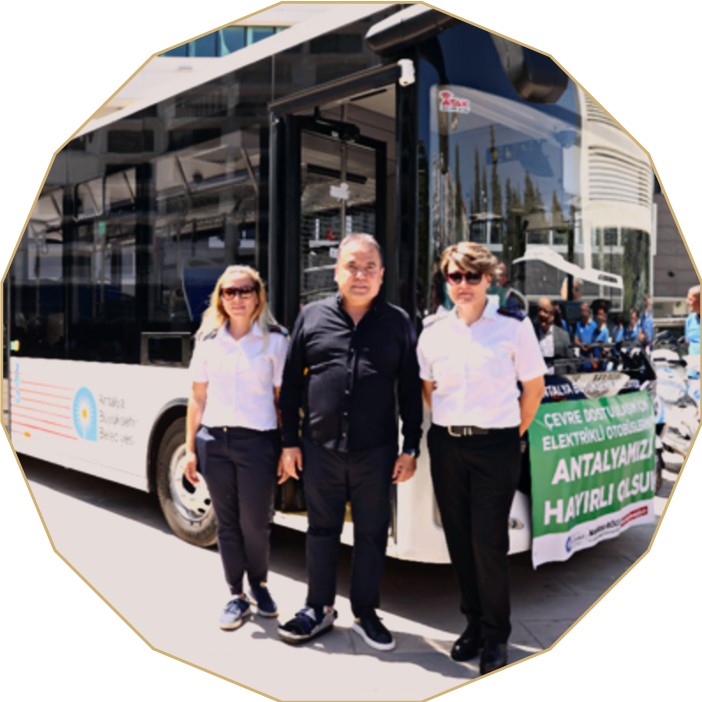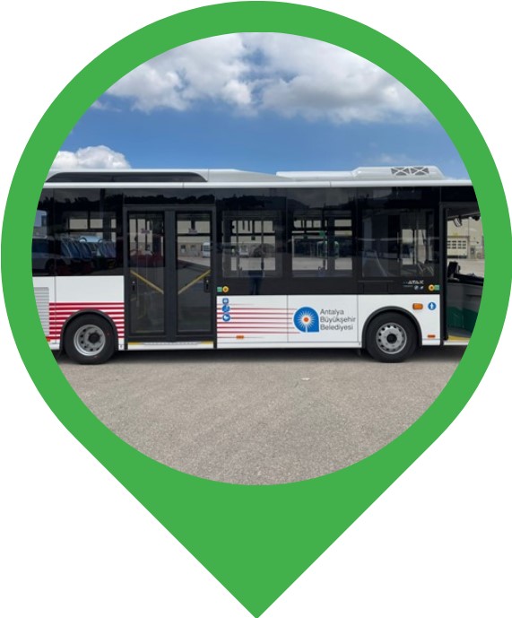 Toplu taşım sistemimizi yenilikçi ve çevre dostu yaklaşımlarla geliştiriyoruz. Antalya’mızın geleceği, temiz hava kalitesinin artırılması, ulaşım kaynaklı salımların azaltması için, motorlu otobüslerin elektrikli otobüslere dönüşümünü hedefliyoruz.
