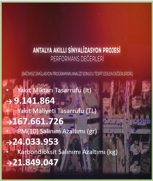 Kavşaklardaki akıllı sinyalizasyon sistemi; dinamik bir uygulama ile trafiği yönetmekte, sinyal sürelerini optimize ederek araçların kırmızı ışıkta gereksiz yere bekleme sürelerini en aza indirmekte, sadece zaman tasarrufu değil aynı zamanda yakıt tasarrufu sağlamakta, karbon emisyon salınımını azaltması sebebiyle çevrenin korunmasına katkı sağlamaktadır.