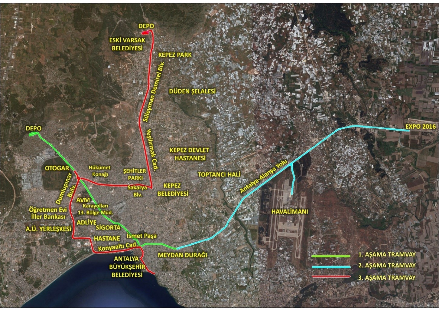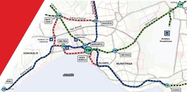 Varsak-Sakarya-Otogar-Üniversite-Meltem-Antalya Müzesi Güzergahı, 24,85 km. Hat Uzunluğu ve 39 adet istasyon
