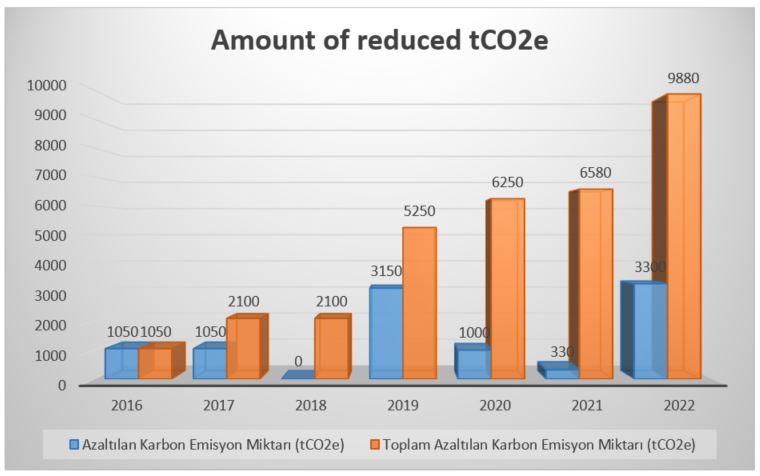 As a result of recycling the waste heat thrown into the atmosphere in boilers and steam turbines with the help of collectors, an additional production of 2.8 MW is made in addition to the energy produced in the existing system.This production is worth enough to meet the electricity consumption of approximately 9,000 houses. We have minimized our thermal effect on global warming by reducing our waste heat at high temperature and flow from 460 C to 170 C.