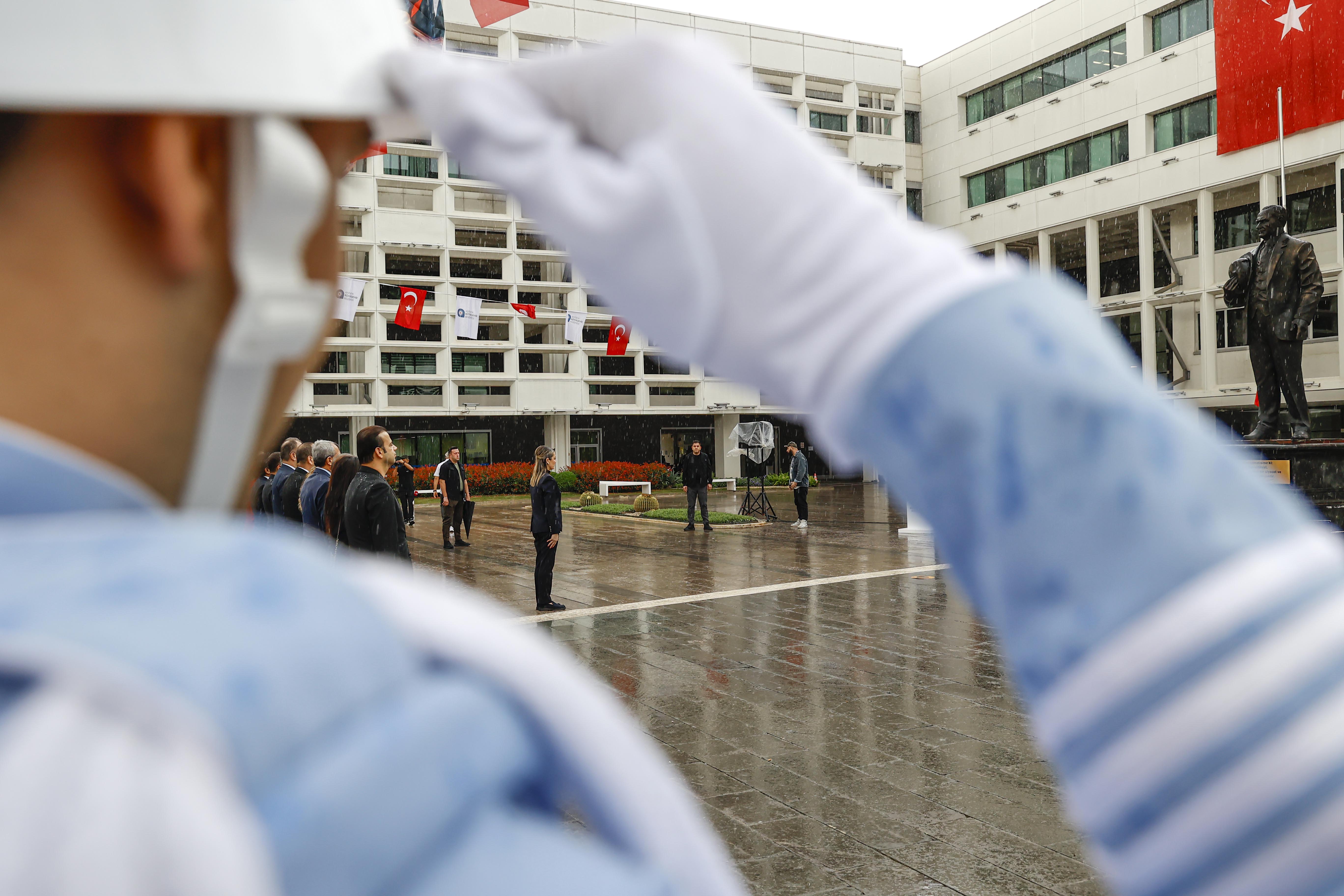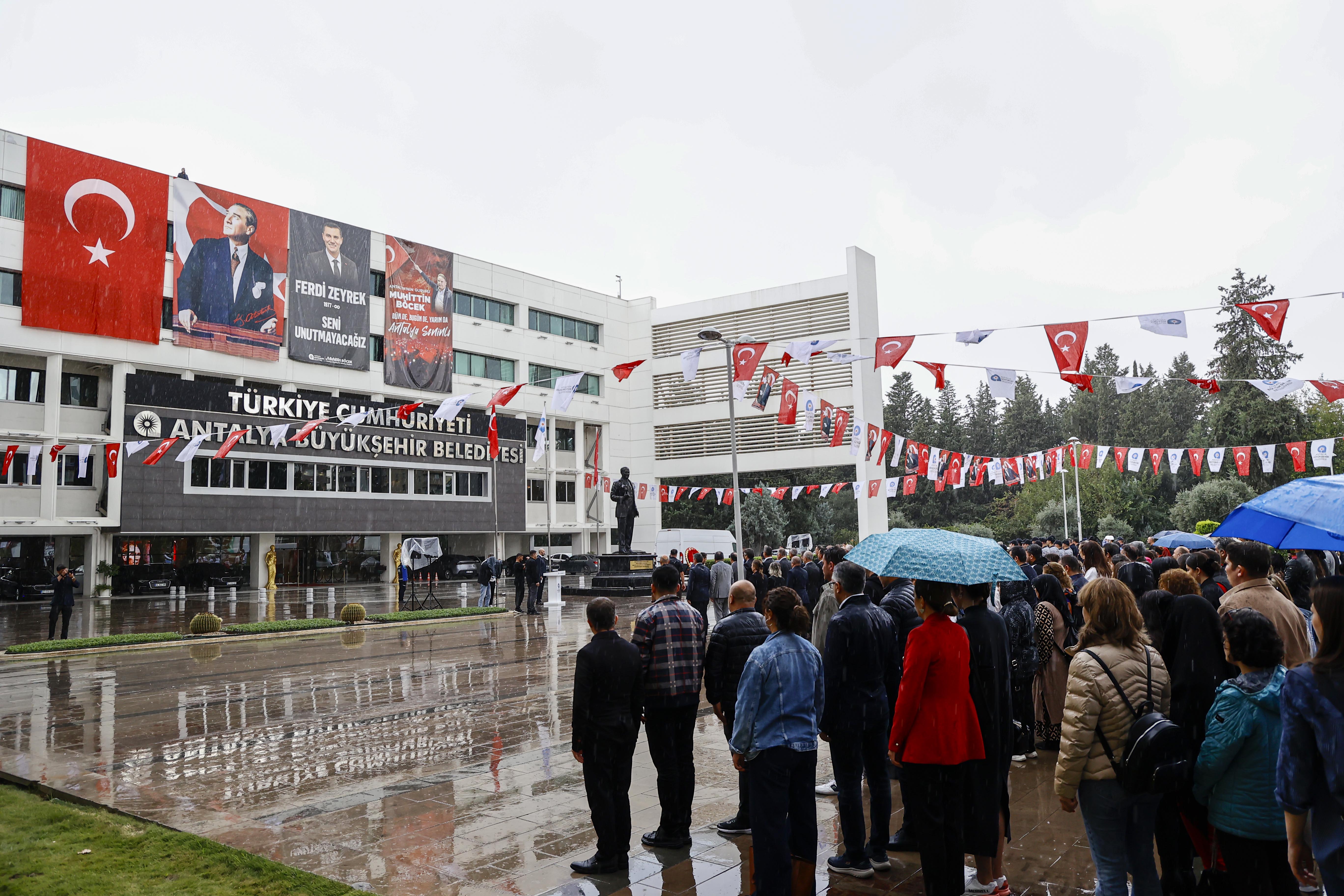 Antalya Büyükşehir Belediyesi, Cumhuriyetimizin ilanının 102. yıl dönümü nedeniyle Büyükşehir Hizmet Binası önünde tören düzenledi. Törene Büyükşehir Belediyesi Genel Sekreteri Cansel Tuncer, Genel Sekreter Yardımcıları, Daire Başkanları, zabıta ve güvenlik personeli katıldı. Törende, Genel Sekreter Cansel Tuncer Atatürk Anıtı’na çelenk sundu. Törende, Cumhuriyetin kurucusu Gazi Mustafa Kemal Atatürk ve silah arkadaşları ile tüm şehitler için saygı duruşunda bulunuldu ardından Büyükşehir Belediyesi Bandosu eşliğinde İstiklal Marşı okundu. Tören sırasında Büyükşehir Belediyesi’nin önünden geçen vatandaşlar da saygı duruşunda bulunarak, törene eşlik etti.