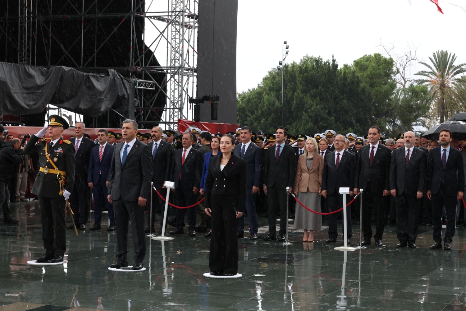 Antalya Büyükşehir Belediyesi Başkan vekili Büşra Özdemir, 29 Ekim Cumhuriyet Bayramı kapsamında Cumhuriyet Meydanı'nda düzenlenen çelenk sunma törenine katıldı. Başkan Vekili Özdemir, Antalya Valisi Hulusi Şahin ile birlikte Atatürk Anıtı’na çelenk sundu.