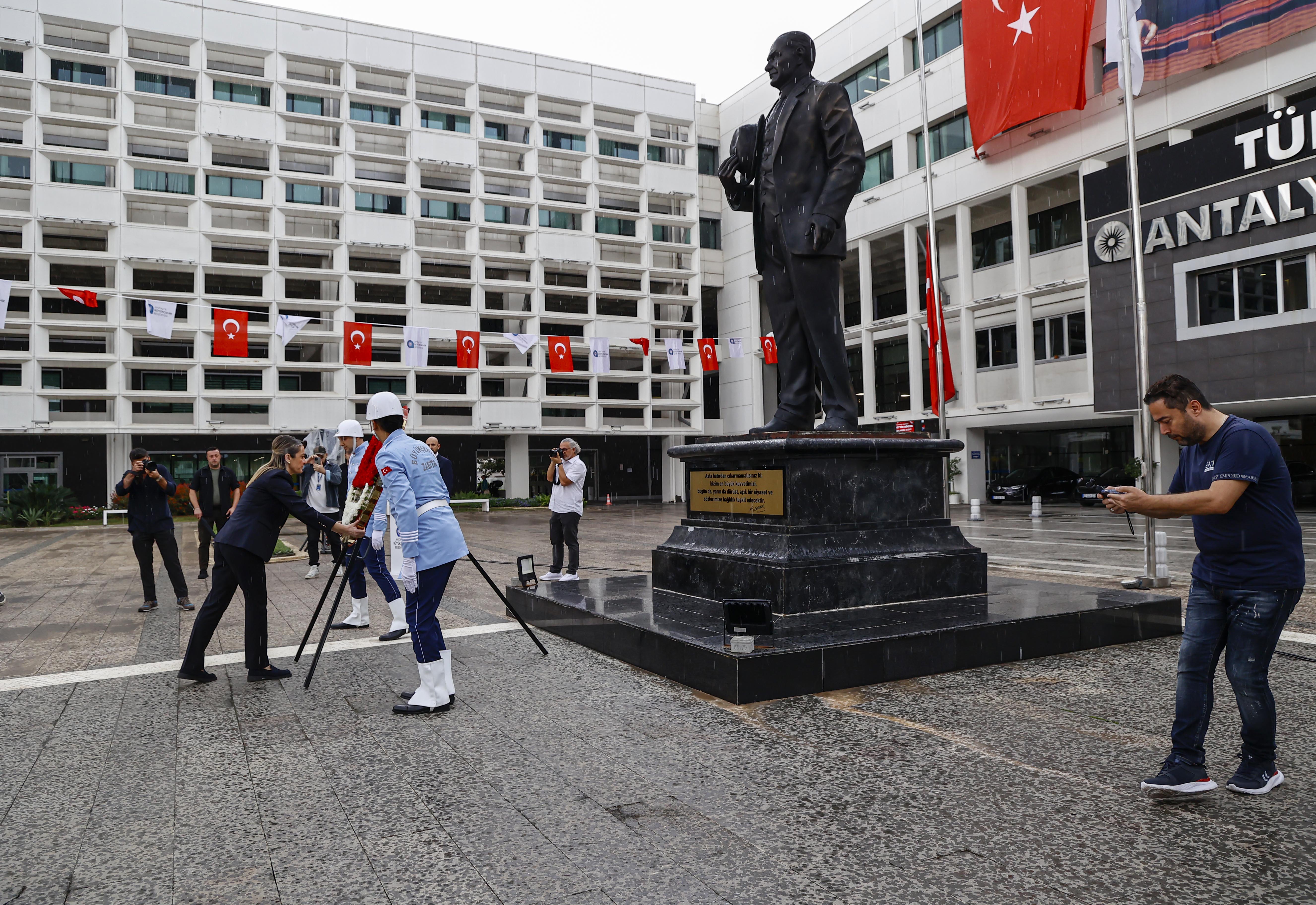 Antalya Büyükşehir Belediyesi Başkan Vekili Büşra Özdemir, Cumhuriyetin Kuruluşu’nun 102’nci yıl dönümü nedeniyle Cumhuriyet Meydanı’nda düzenlenen çelenk sunma törenine katıldı. Antalya Büyükşehir Belediyesi’nde de Atatürk Anıtı’na çelenk sunma töreni gerçekleştirildi.